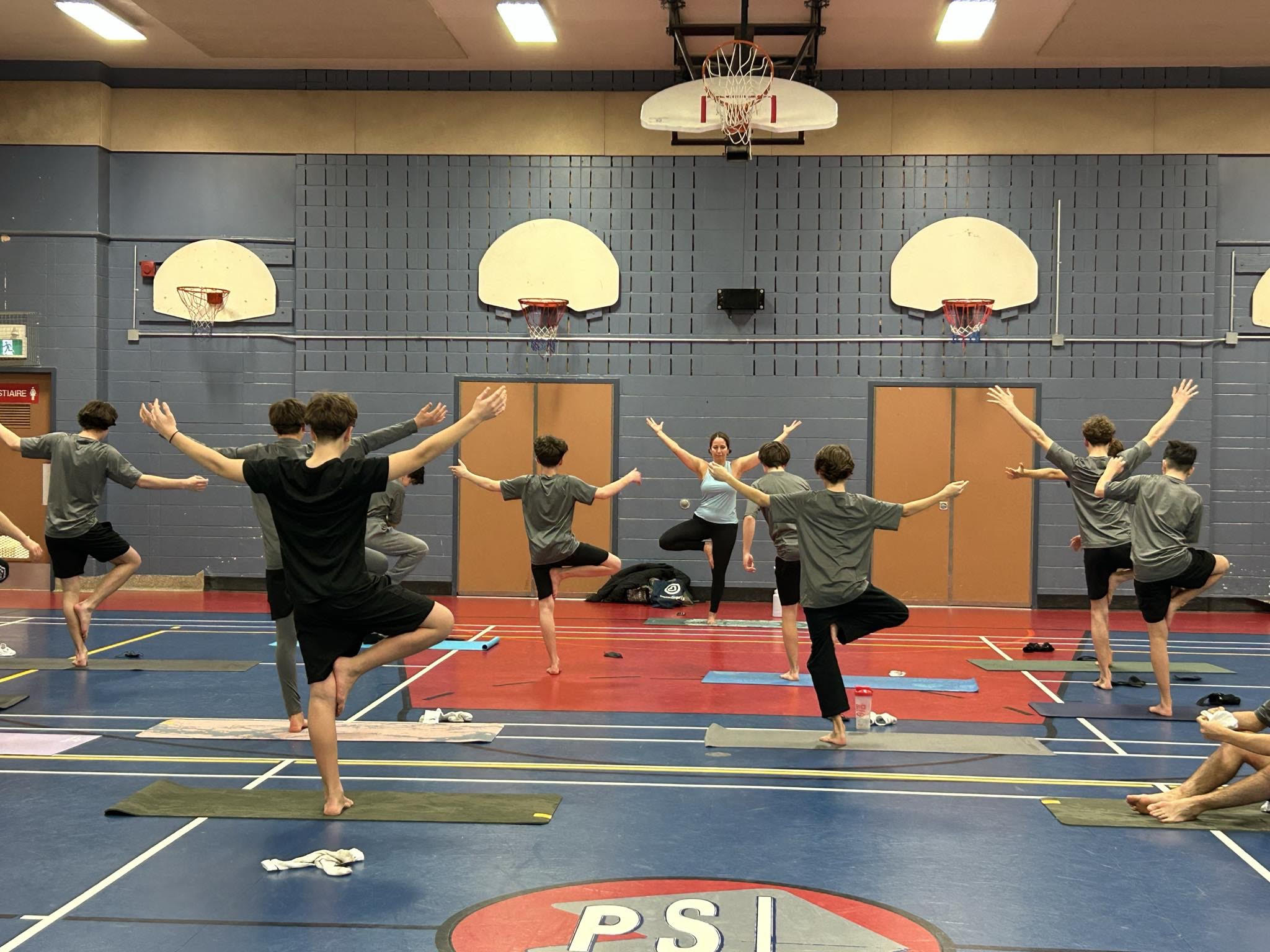Scéance de yoga : Grâce à des mouvements simples, à des exercices de respiration et à des moments de détente guidée, les élèves apprennent à mieux gérer leur stress, à se recentrer et à développer une meilleure conscience corporelle